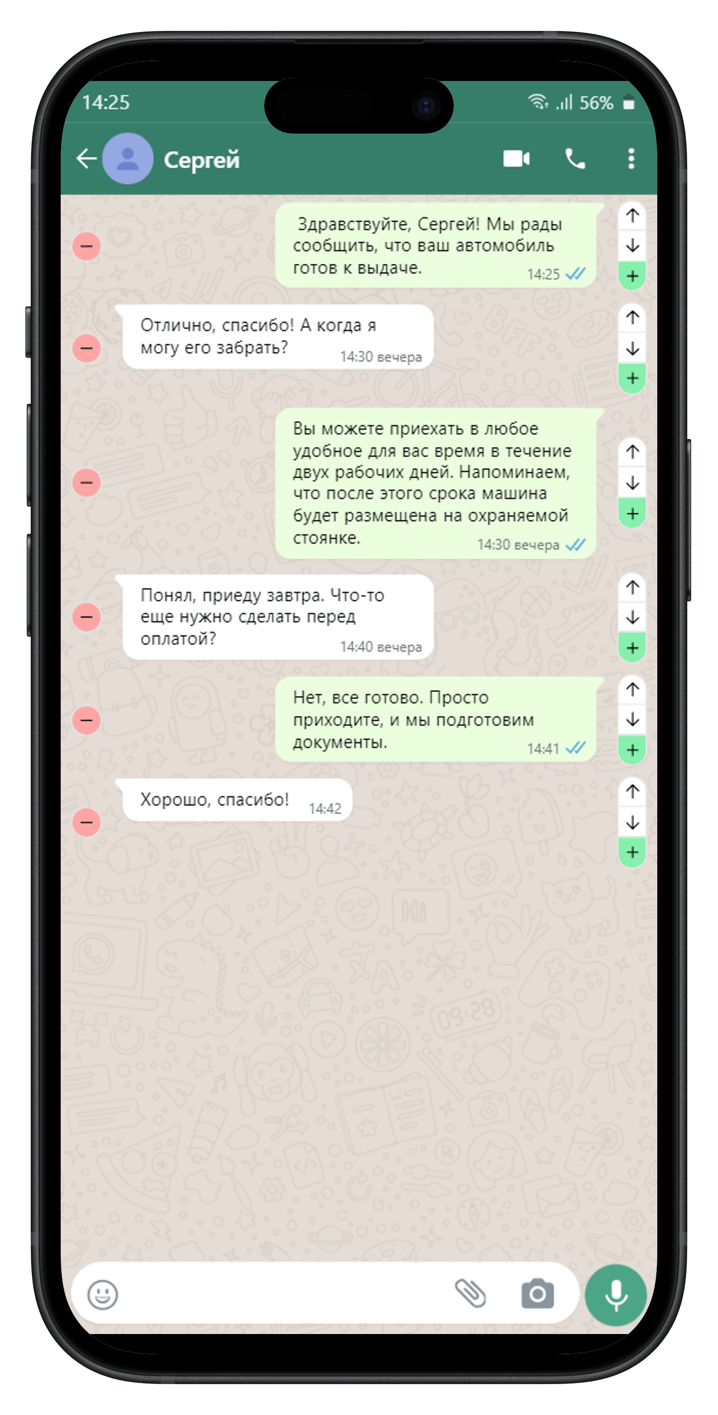 Мы оперативно уведомим вас, когда автомобиль будет готов к выдаче через: